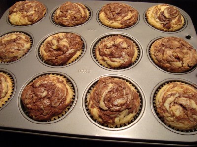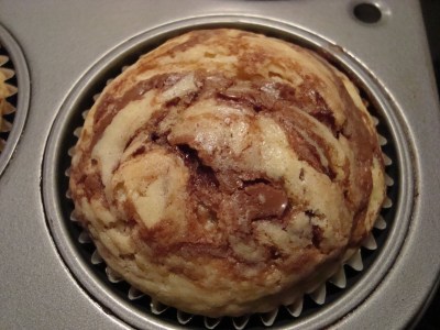 As a testament to progress, I can now find Nutella in the grocery store right next to the peanut butter (as it should be in any civilized country).  Purchasing a jar with intent to actually cook with it seems to justify all the time I will inevitably spend eating it straight from the jar with a large spoon.  I subbed out half the sugar in this recipe for Splenda, which made me feel slightly better about stuffing two of them into my mouth almost immediately after removing them from the oven.  Yum!