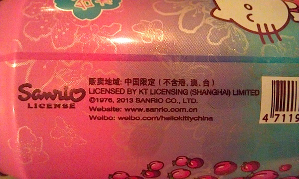 First impression? I swear it looks like Hello Kitty is farting out the fruit. This does not give me a good feeling about the contents of the can.
