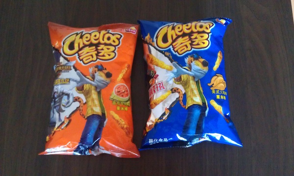 Ok, they’re not chips, but they are still technically a Lay’s product so we decided to include these as a bonus round. Regular, manna-from-heaven cheesy Cheetos are (for reasons unknown to me) not sold in China. Instead, they offer up these two varieties: Tomato Beef and American-Style Roasted Chicken.